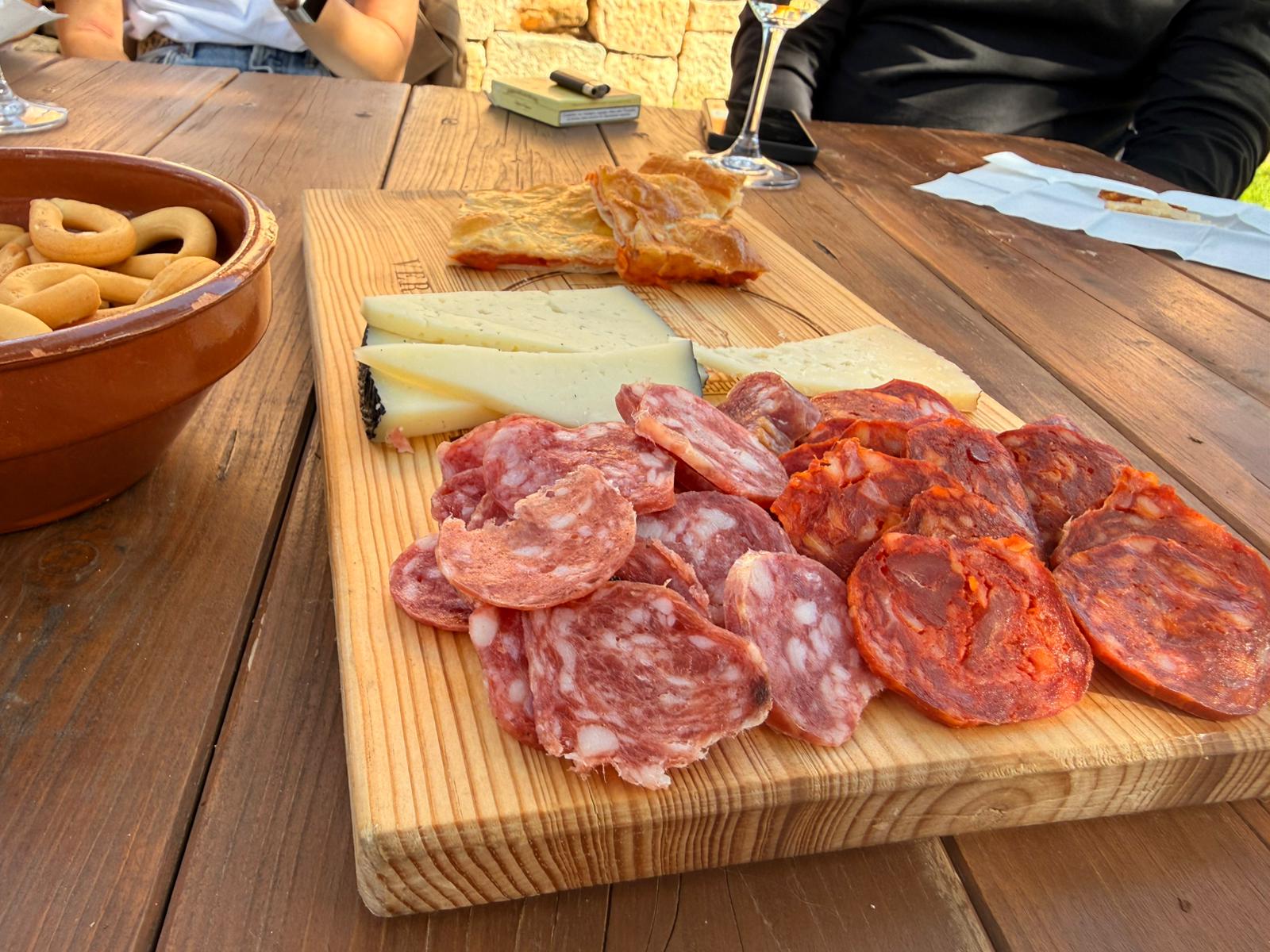 Board of local cheeses and cured meats to accompany the wines